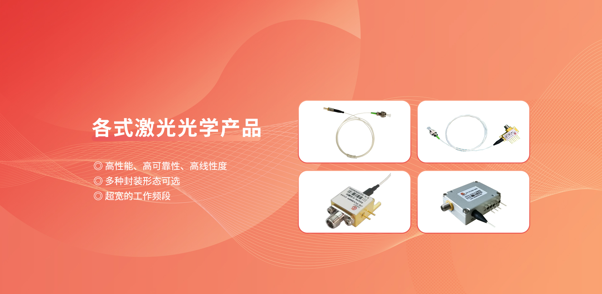 公司產(chǎn)品廣泛應用于衛(wèi)星通信、光傳感、人工智能、光纖通信、無線通信、導航定位、泛物聯(lián)網(wǎng)、激光定向能、超快超強超微激光加工等領域,并已為國內(nèi)諸多科研院所及高校提供系列化產(chǎn)品及解決方案。